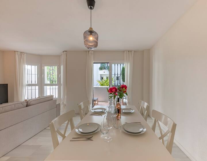 דירת חדר שינה אחת זו, הממוקמת בקומת הקרקע של מתחם המגורים לוס נאראנג'וס בנואבה אנדלוסיה, מעוצבת בקפידה כדי להציע לכם שהייה נוחה ונעימה. - הדירה יכולה להכיל עד 4 אורחים.