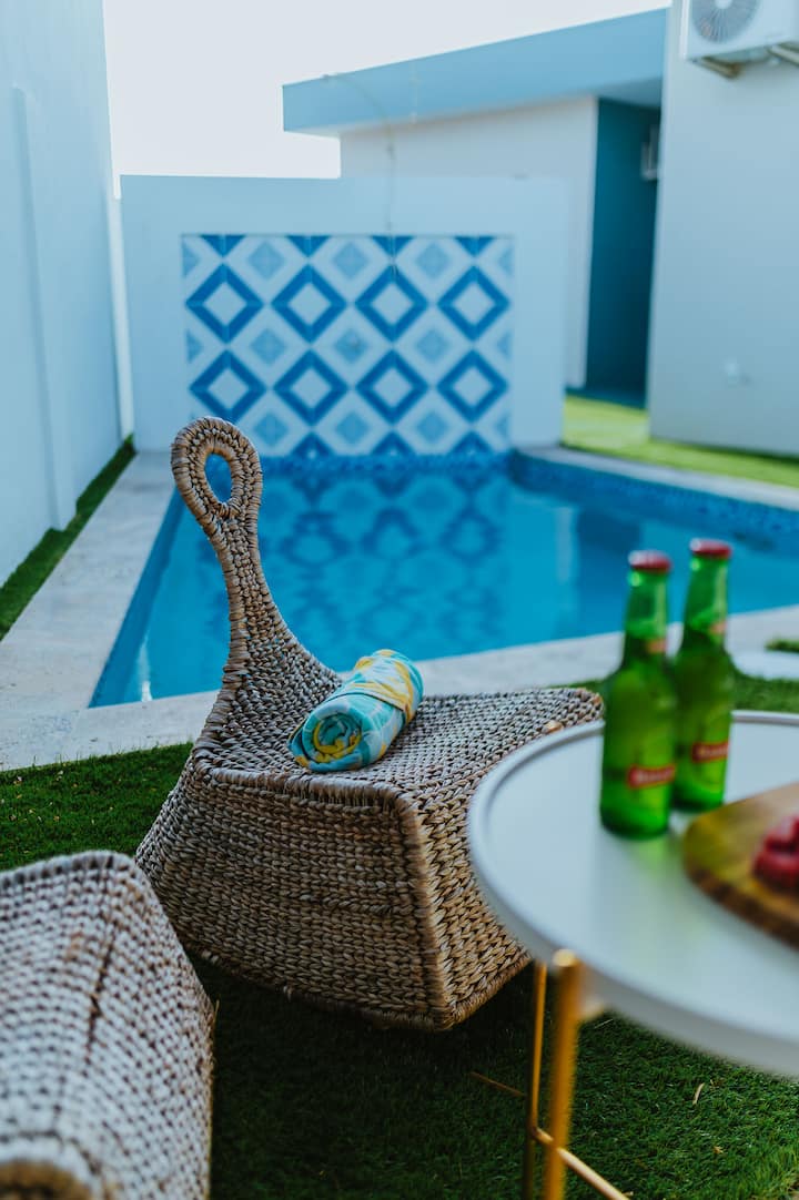 שהייה בנכס עם 2 חדרי שינה ובריכה פרטית ליד נמל התעופה