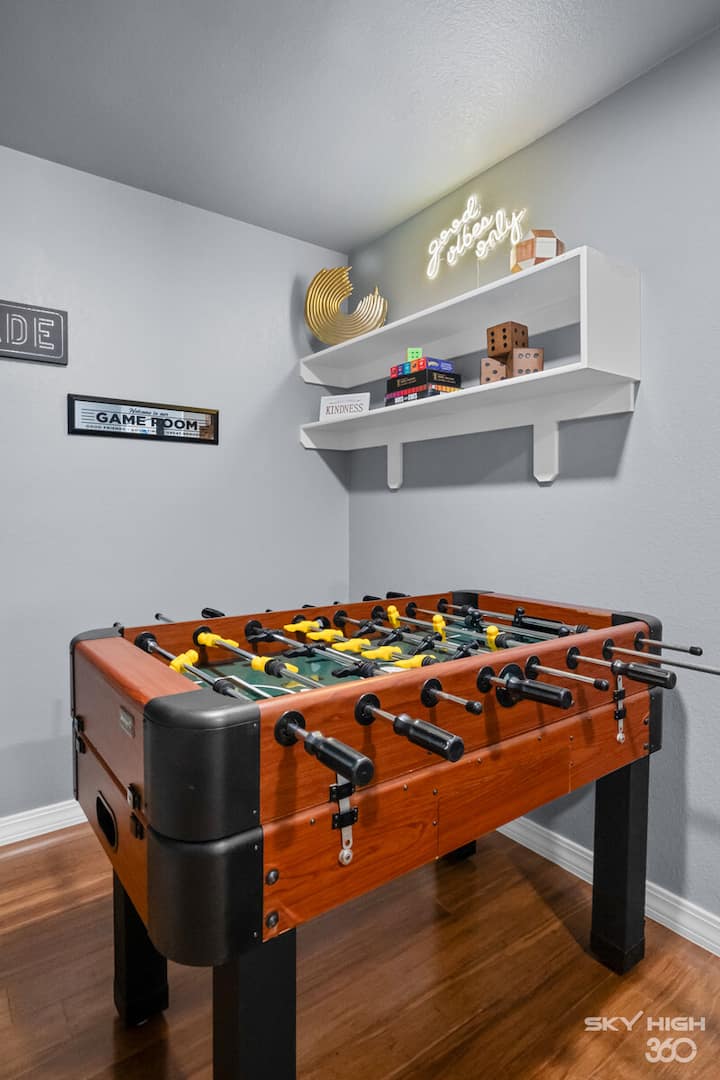 * חדר משחקים עם שולחן כדורגל, ג'נגה ענקית, משחקי קופסה, משחקי קלפים ושולחן קטן כדי שתוכלו לעבוד במידת הצורך.