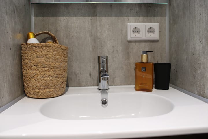 בחדר הרחצה יש מקלחת מרווחת ויחידת שירותים עם מראה מוארת. רעננו את עצמכם עם מוצרי Rituals הרכים והטעימים הכלולים במהלך השהייה!