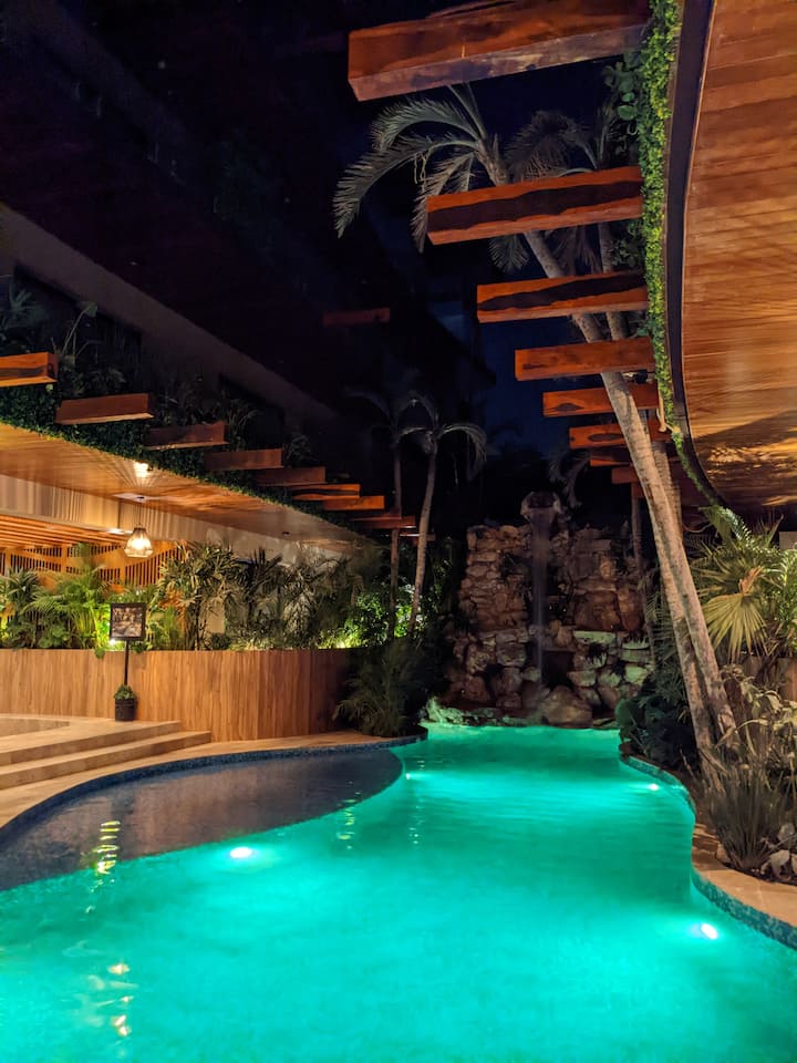 המיקום הטוב ביותר בטולום. ממש מול כיכר הקניות הגדולה ביותר Chedraui, מסעדות, חללי עבודה משותפים, סטודיו ליוגה, השכרת רכבים ואופניים, ועם זאת ברחוב צדדי שקט. רק נסיעה קצרה על אופניים לחוף הים במסלול אופניים נפרד דרך הג'ונגל המאיה של Avenida Coba (20 דקות). חופי טולום הם חול לבן יפהפה, המים בכל גווני הכחול הטורקיז.