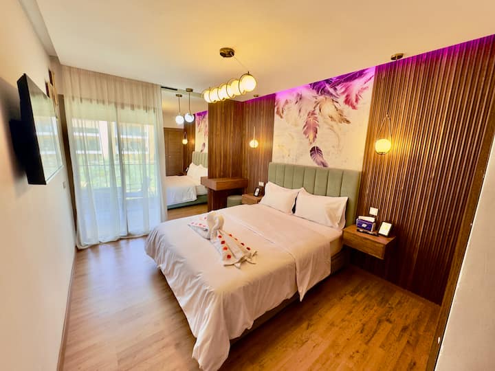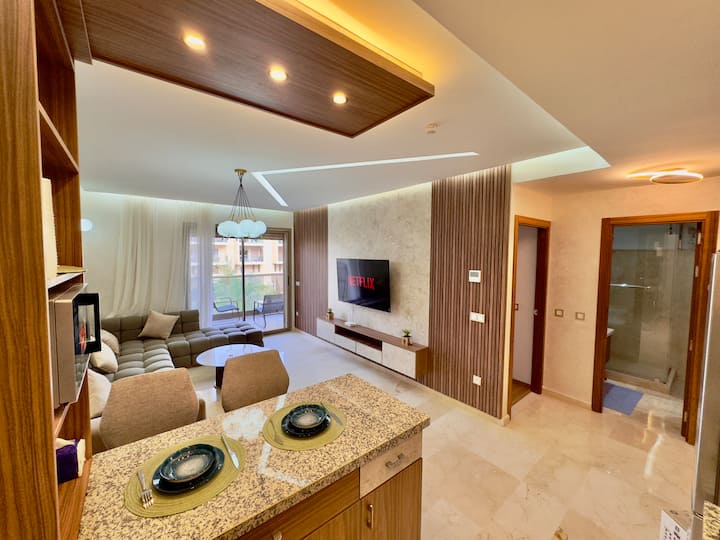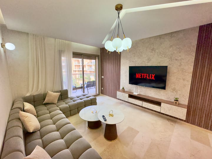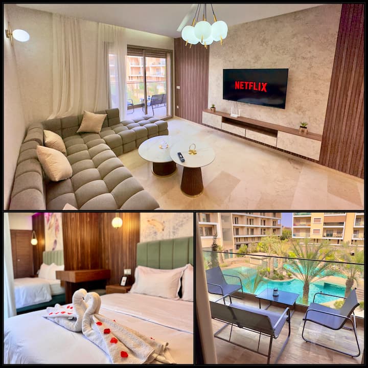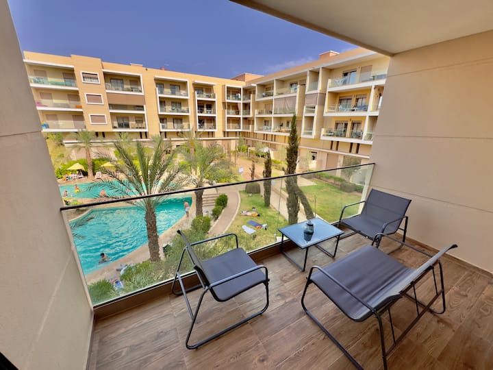 דירה יוקרתית עם נוף לבריכה, מרפסת פרטית וחניה