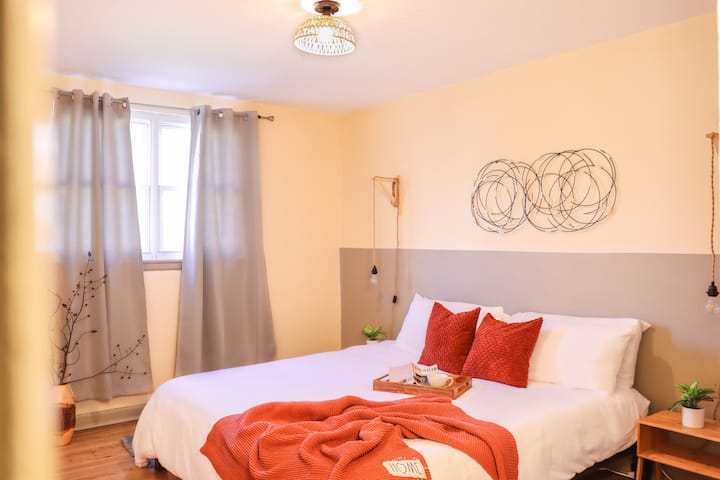 להטעין מצברים בנופש בריאות ורווחה המיועד לשלווה. תיהנו מארומתרפיה, ממכשיר אדים קריר לנשימה רגועה וכריות היפואלרגניות. תאורת אווירה מבוקרת קולית באמצעות Alexa קובעת את הטון ומקלחת יערות גשם. ממוקם בשכונה שקטה ובטוחה ליד מרכז העיר ללא רעש. 5 דקות למנייאנק ופארק פיירמאונט, מרכז מאן, מסלולי רכיבה על אופניים/הליכה ליד נהר שוילקיל. צ'ק-אין/צ'ק-אאוט גמיש (רק תבקשו!), חניה בחינם ומכונת כביסה/מייבש כביסה.
