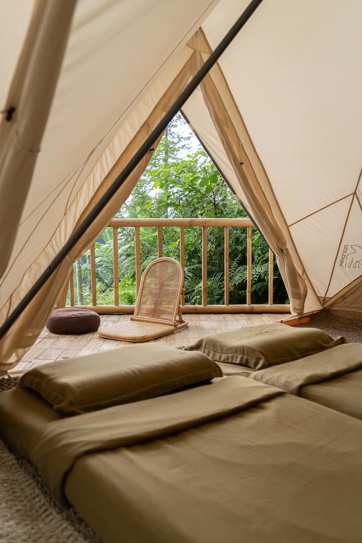 אחת מ-7 אוהלי הקמפינג היוקרתיים שלנו, השוכנים ביערות הגשם הקדמוניים הגדולים ביותר שנותרו בבלי, ממתינה לכם – שם יופי הג'ונגל הגולמי פוגש עיצוב שקט. השקענו את כל אהבתנו ביצירת גן עדן לאוהב הטבע המתוחכם. זהו מקום של שקט, נוכחות והתחברות מחודשת. חזרה לכדור הארץ.