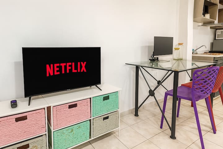 רשת Wi-Fi מהירה של 75 מגה ביט לשנייה, עם פינת עבודה ייעודית.