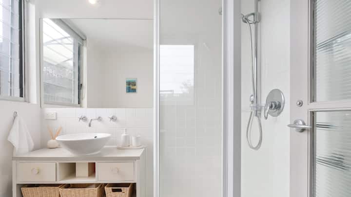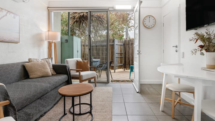 הדירה, שמתאימה ל-5 אורחים, מציעה שילוב מושך של סגנון ופשטות. חצר קדמית קטנה ופרטית מוקפת בגדר מקסים, ואילו החצר האחורית מוקפת בעצי תה מקומיים וצמחים חוףיים, ויוצרת נווה מדבר חיצוני שקט, אידיאלי לשתיית קפה בשמש הבוקר או להירגע עם משקה תחת חופה של כוכבים.