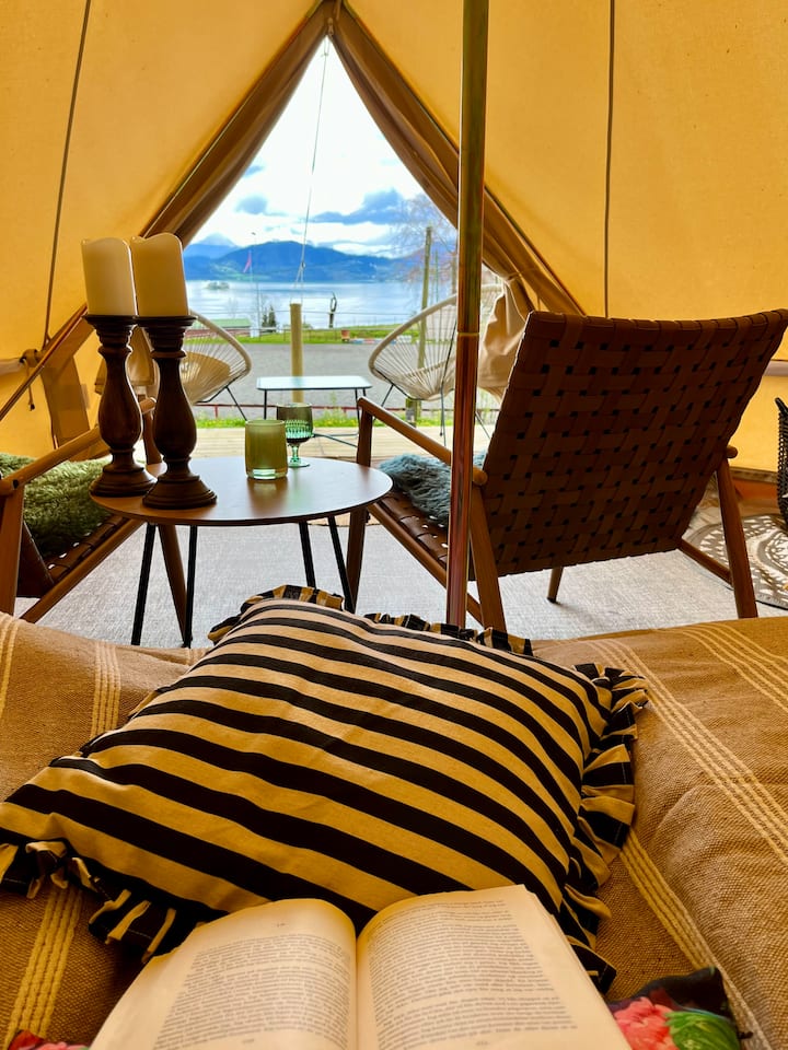 בערב תוכלו לשבת מול האוהל וליהנות מסביב למדורה, להביט מעבר ל-Høylandssundet לכיוון Halsnøy, סוסים גבוהים שסוררים בסביבה – ואם יתמזל מזלכם, הירח יעלה וישתקף במים.