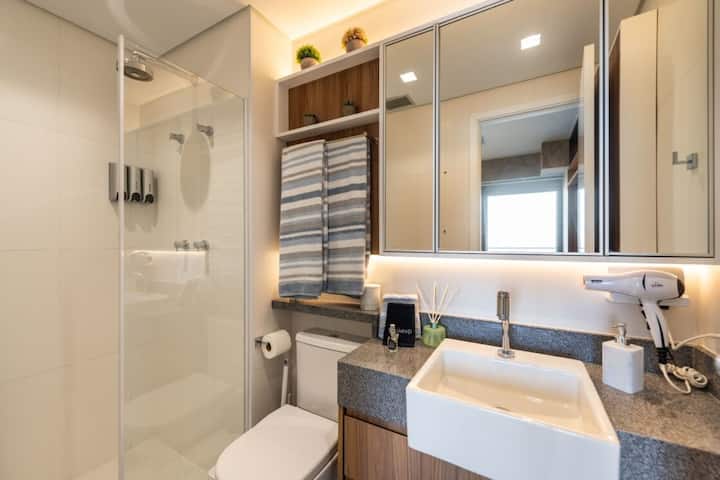 ברוכים הבאים לדירתנו הנעימה בבניין המודרני River One Butantã, מושלם למי שמחפש נוחות, פרקטיות ומיקום מיוחד בסאו פאולו!