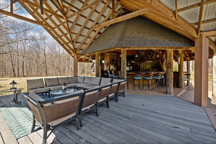 ברוכים הבאים למקום המפלט היוקרתי האולטימטיבי שלכם — נופש מדהים בגודל 14,000 רגל רבוע שיכול להכיל בנוחות עד 29 אורחים! האחוזה המבודדת הזו, השוכנת על 5 דונם פרטיים של יער, מושלמת לאיחוד משפחתי, חופשות קבוצתיות או חגיגות מיוחדות.