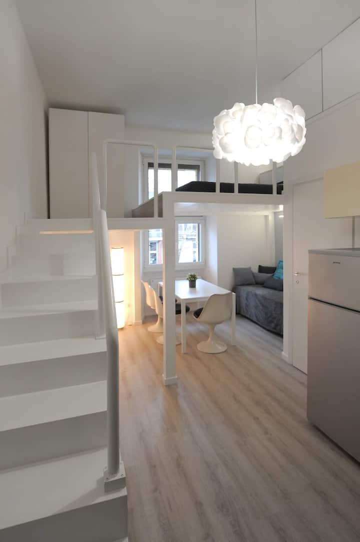 דירת סטודיו מוארת עם קומת ביניים