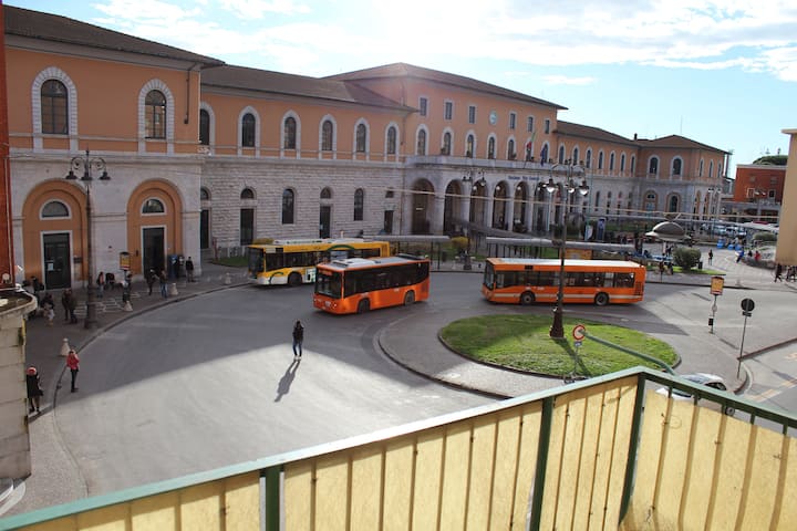 חדר שינה עם מיטת קינג סייז ליד תחנת הרכבת המרכזית של פיזה