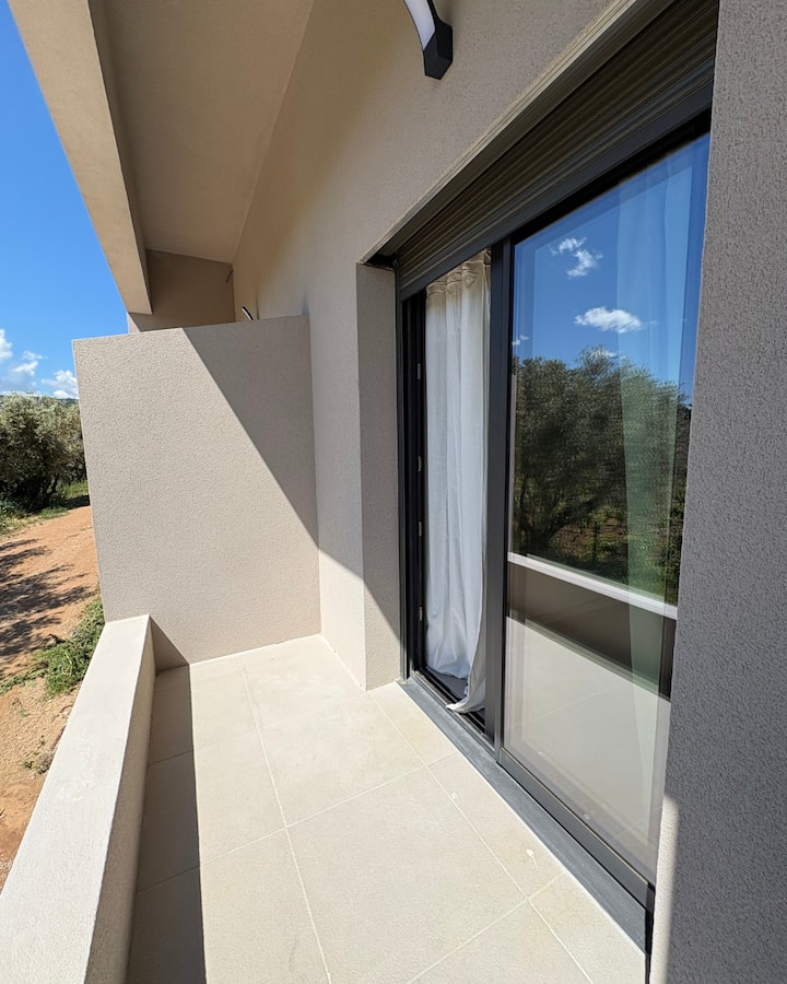 דירת סטודיו חדשה עם מיזוג אוויר וגישה לבריכת שחייה בשעות קבועות.