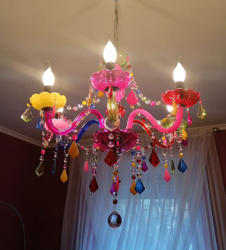 • נברשת עם גבישים צבעוניים