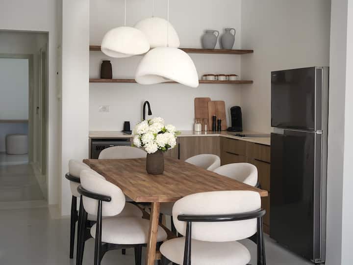 הדירה הזו התעוררה לחיים יחד עם השותפה שלי, ג'ני, שהיא מעצבת פנים שאוהבת חללים מינימליסטיים ואורגניים. שילבנו את התשוקות שלנו כדי ליצור מקום שקט ומסוגנן שבו תוכלו להירגע וליהנות מאורח החיים של גונה.