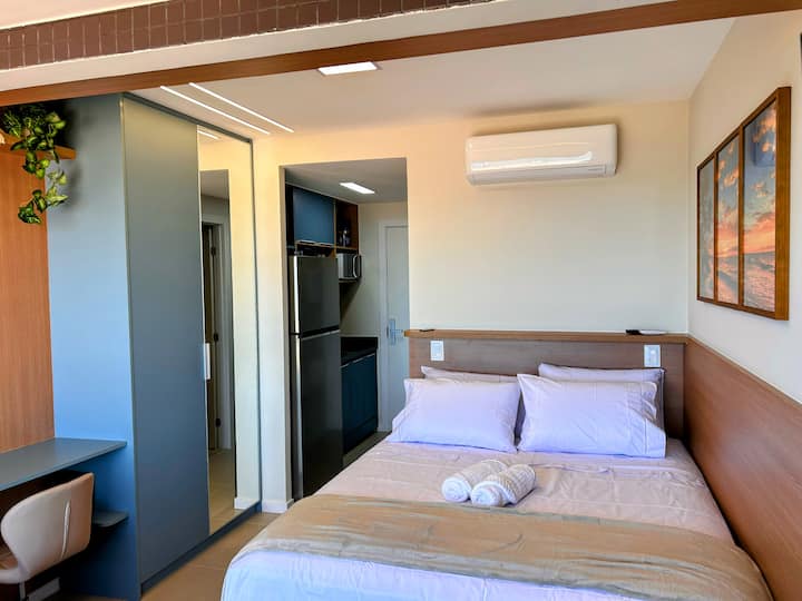 ✨ התמורה הטובה ביותר לכסף, תוך שילוב נוחות ופרקטיות. הסטודיו ממוקם בבניין מודרני ואלגנטי בלב ריו ורמלו, ומציע שוער מסביב לשעון עם גישה ביומטרית לפנים, אזורי פנאי ומגורים מלאים, וגם גנרטור*