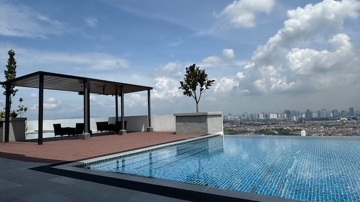 פרברים של קואלה לומפור | דירת מלון יוקרתית בסובאנג ג'איה | בריכת שחייה אינסופית | מיטות זוגיות * 2 | מקרר גדול