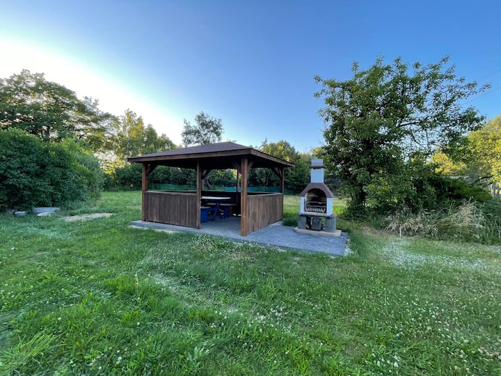 בית כפרי עם צריף ומתקן גריל