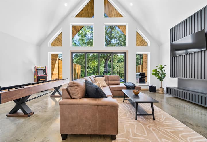 בין העצים ב-Cabins at Westcliff, Majestic הוא מקום מפלט מודרני בצורת A ב-Hot Springs, ארקנסו, שבו יופי טבעי ועיצוב מוקפד מתחברים. בפינה שקטה של אתר הנופש הקטן והחדש ביותר באזור, הבקתה החמה והמוזמנת הזו מושלמת לחופשה מרגיעה עם נגיעה מדויקת של יוקרה.