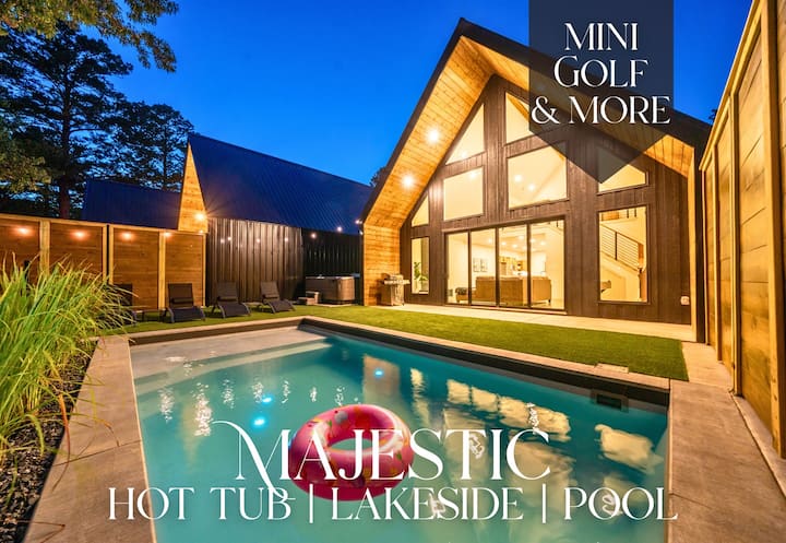 Majestic הוא בקתה מודרנית בצורת A במעיינות החמים, ארקנסו, המציעה 2 חדרי שינה עם מיטת קינג סייז, 2 חדרי רחצה ושירותים, וספה נפתחת עם מיטת קווין סייז לחלל נוסף. תוכלו ליהנות מבריכה פרטית מחוממת, ג'קוזי ובור אש, או לצאת עם גלשני המשוטים והקיאקים לאגם הסמוך. בפנים, סלון פתוח עם תקרות קמורות, קמין נעים ומטבח מאובזר. רק כמה דקות מהפארק הלאומי הוט ספרינגס, זו החופשה המושלמת למנוחה ולהרפתקאות.