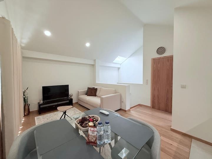 וילה מודרנית ונעימה, הממוקמת במתחם פרטי של בניין היסטורי ברואה דה קמואס. יש חדר שינה עם חדר רחצה פרטי, סלון עם ספה נפתחת לשני אנשים, מטבחון מאובזר, חדר רחצה שני ומיזוג אוויר בחדר השינה ובסלון. בחוץ, המרפסת הפרטית מזמינה אתכם לרגעי מנוחה, עם שולחן ל-4 אנשים. כמה מטרים מטרינדאדה ומרכז העיר, זהו המקלט האידיאלי לגלות את העיר בנוחות ושלווה.