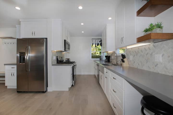 לברוח לווילה היוקרתית הזו עם בריכת מים מלוחים מחוממת עם ג'קוזי מפל, וסטודיו מוזיקה מקצועי עם תופים, פסנתר, גיטרה, מיקרופונים ורשות הפלסטינית שמתאימה לקריוקי עם המכשיר שלכם. בנכס יש רשת Wi - Fi במהירות גבוהה, ומאורת הבידור כוללת את חבילת הכבלים Ultimate Ultimate של Frontier, כולל HBO, ESPN ועוד. רוכבים על שביל האופניים לחוף וניס, חוף הסיליקון, סנטה מוניקה ועוד. הליכה לפארקים, מגרש גולף ומגרשי טניס. קרוב לרבים מהאטרקציות הגדולות ביותר של לוס אנג'לס.