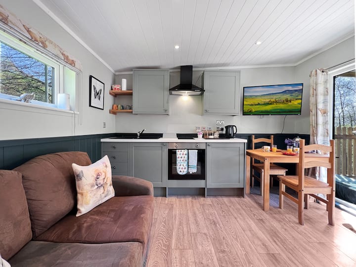 בחוץ, בקתה Robins Nest כוללת אזור מרפסת פרטי עם נוף לכפר, כיסאות נדנדה ואמבטיית ג'קוזי פינתית — מושלם להירגע אחרי יום של סיורים. יש שמיכות לערבים קרירים יותר, כך שתוכלו להירגע בנוחות וליהנות מהסביבה השלווה.