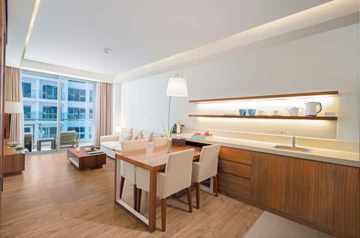 דירת שני חדרי שינה | קומה 10, מרפסת עם נוף חלקי לאוקיינוס, חדר כושר ובריכה