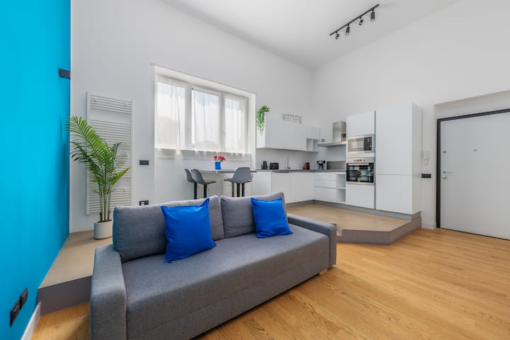 בדירה המשופצת הזו יש תקרות גבוהות, קירות צבעוניים ותאורת LED זוהרת, שיוצרים את הרקע המושלם לשהייה שלכם במילאנו. מרווח ומלא אופי, הוא אידיאלי למנוחה, עבודה או סיור בעיר.