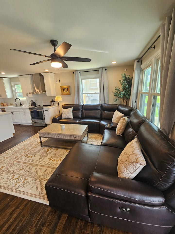 היכנסו לבית שלנו הכולל קונספט פתוח, רצפות עץ מחודשות וגופי תאורה חדשים. בסלון יש ספה גדולה מושלמת כדי ליהנות מסרט בטלוויזיה הגדולה או להתעדכן עם בני משפחה וחברים. משם תוכלו לראות את המטבח ששופץ לאחרונה, הכולל ארונות שייקר לבנים, מכשירי חשמל מפלדת אל-חלד של GE, אי גדול, משטחי קוורץ ומשטח אריחים.