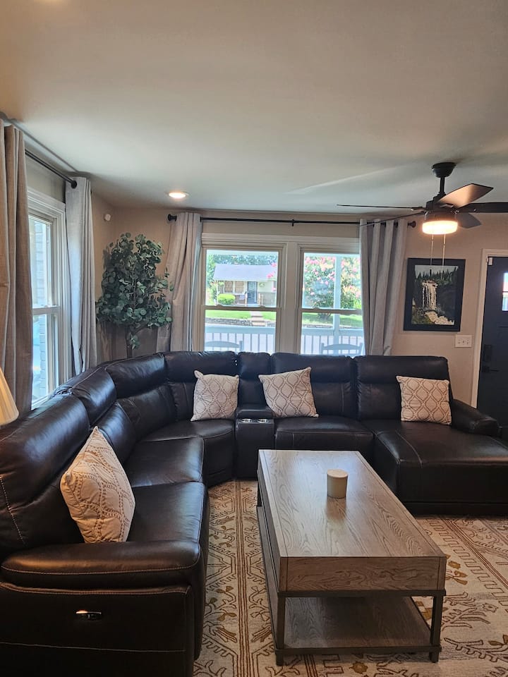 מהמדרכה תבחינו במרפסת הקדמית עם כמה כיסאות נדנדה מושלמים כדי ליהנות מהמזג האוויר היפהפה בנאשוויל. הדלת הקדמית כוללת מנעול חכם משולב לגישה קלה לבית שלנו במהלך השהייה שלכם.