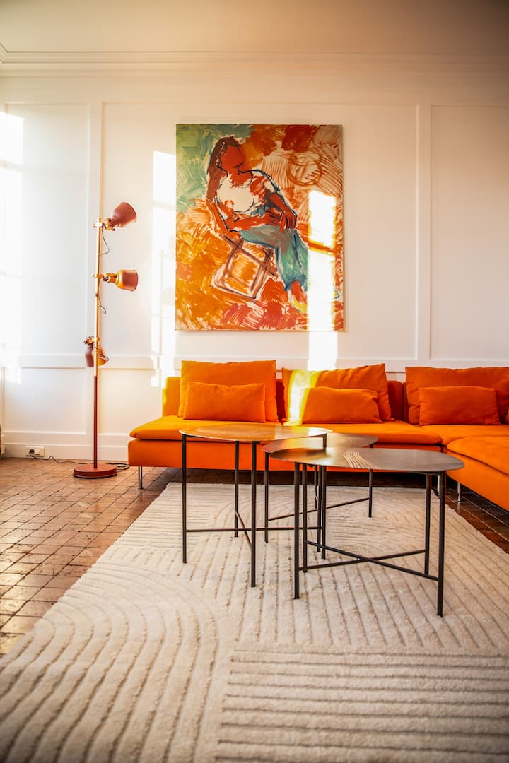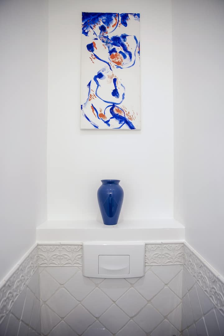 רצפות הדירה עשויות מאריחי טרוורטין איראניים בעבודת יד, וציורים מקוריים מעטרים את הקירות.