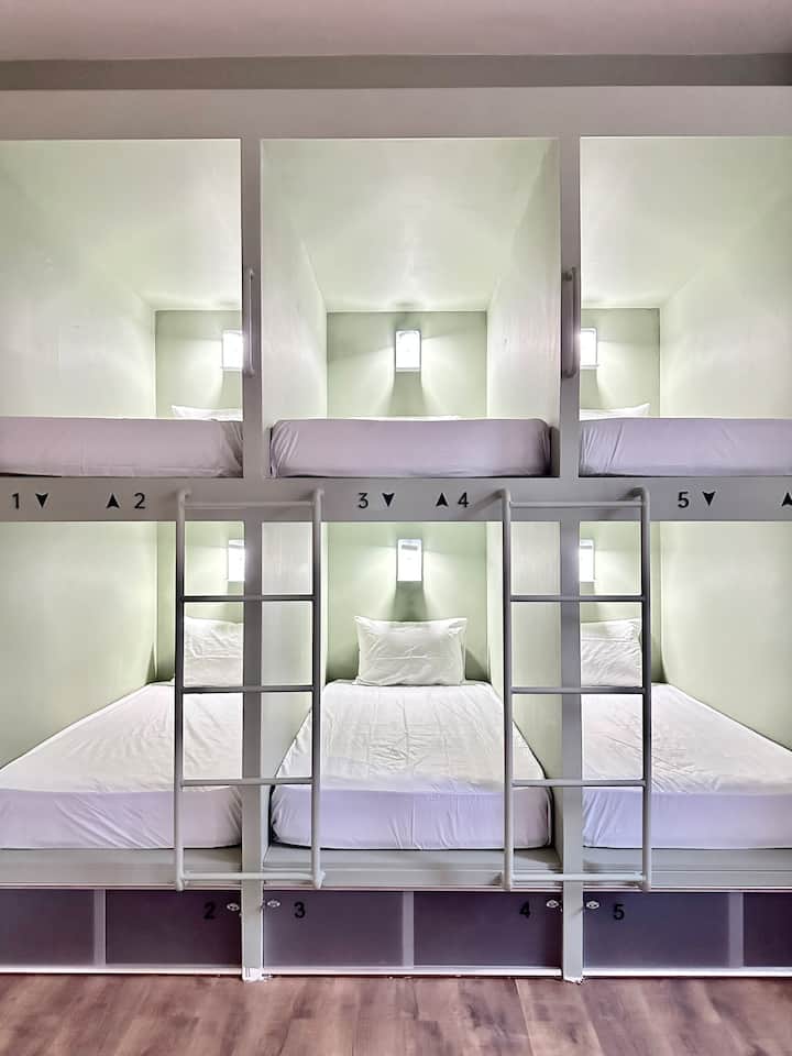 Pink Pineapple@ מיטה בחדר עם 8 מיטות