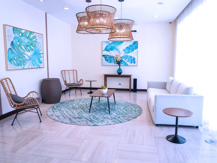ברוכים הבאים למקום המפלט השקט שלכם על החוף בפאלם ביץ' ווסט, בית מגורים מודרני ומסוגנן הממוקם בלב קהילת המטרו פארק התוססת בפאסאי סיטי. רק כמה דקות ממרכז הקניות המפורסם של אסיה וממפרץ מנילה, הדירה האלגנטית הזו מושלמת לסופי שבוע רגועים, לשהיות עסקים או לחופשות רומנטיות.