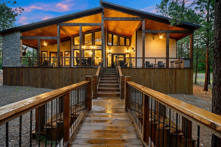 ברוכים הבאים ל-Pony Up - Pony Up, שממוקם בין עצי האורן היפים של Timbercreek Trails, מציע שילוב מושלם של יוקרה מודרנית, שירותים למשפחות וקסם כפרי. עם יותר מ-3,500 רגל רבוע של מרחב מחיה פנימי וחיצוני, הבקתה המותאמת אישית הזו אידיאלית למשפחות או לקבוצות המעוניינות להירגע, לשחק ולסייר. עם שלוש סוויטות פרטיות בגודל קינג וחדר משחקים/מיטות קומותיים מרווח, Pony Up יכול להכיל בנוחות עד 18 אורחים.