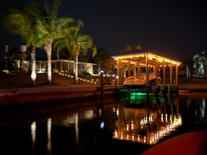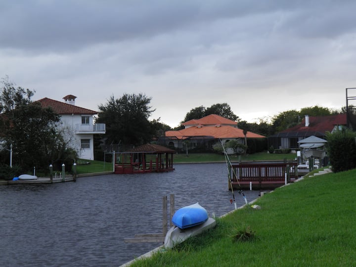 בית על תעלת מים מלוחים עם רציף לדיג ושיט בסירות