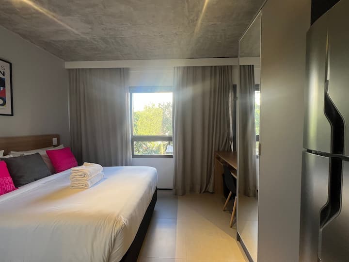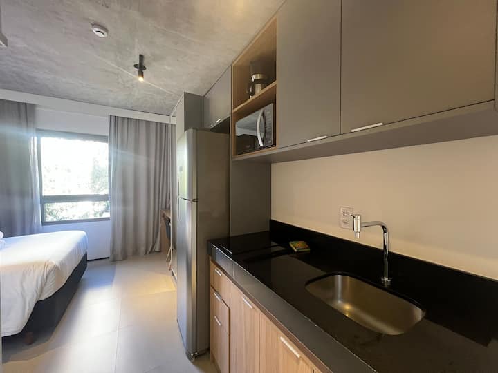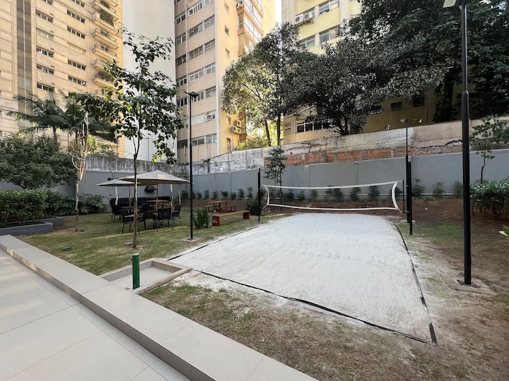 דירת סטודיו מעולה במיקום מעולה ברחוב אוגוסטה (צד הגנים), 5 דקות משדרות פאוליסטה, 7 דקות מפארק איבירפוארה, רחוב אוסקר פריירה ועוד, אזור שופע מסעדות, ברים וחנויות. סטודיו עם מקרר, טלוויזיה חכמה, מיטה ואמבטיה, מכונת קפה, מטבחון לארוחות קטנות. בית דירות עם חדר כושר (ענק), חלל עבודה משותף, מכבסה (בתשלום), מינימרקט ומגרש טניס חוף.