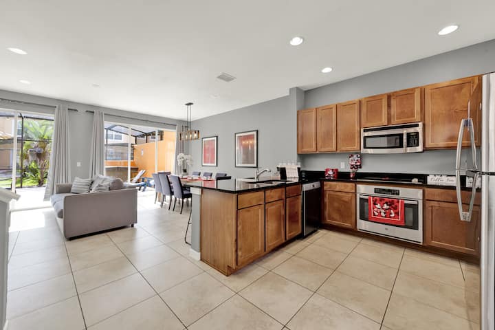 וילה מעודכנת עם 3 חדרי שינה וג'קוזי/10 דקות לדיסני!
