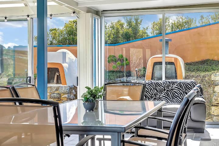 פינת האוכל מפגישה את כולם, בין אם אתם יושבים סביב שולחן העץ הפנימי או נהנים מארוחות בחוץ במרפסת המקורה. המנגל ותנור הפיצה הופכים את הבישול בחוץ לחלק מהחוויה, ונופי השמים המשתנים כל הזמן הופכים כל ארוחה לבלתי נשכחת.