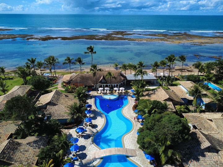Na praia em frente, durante a maré baixa, forma-se uma piscina natural perfeita para relaxar, com caiaques e stand up paddle disponíveis para alugar e curtir em família, em meio ao mar calmo. Já na maré alta, o cenário convida a mergulhos refrescantes. E, para completar, há diversos bares e restaurantes a poucos passos dali.