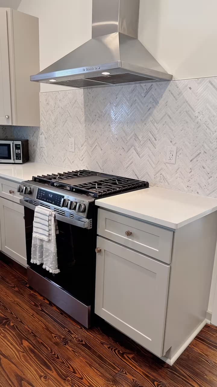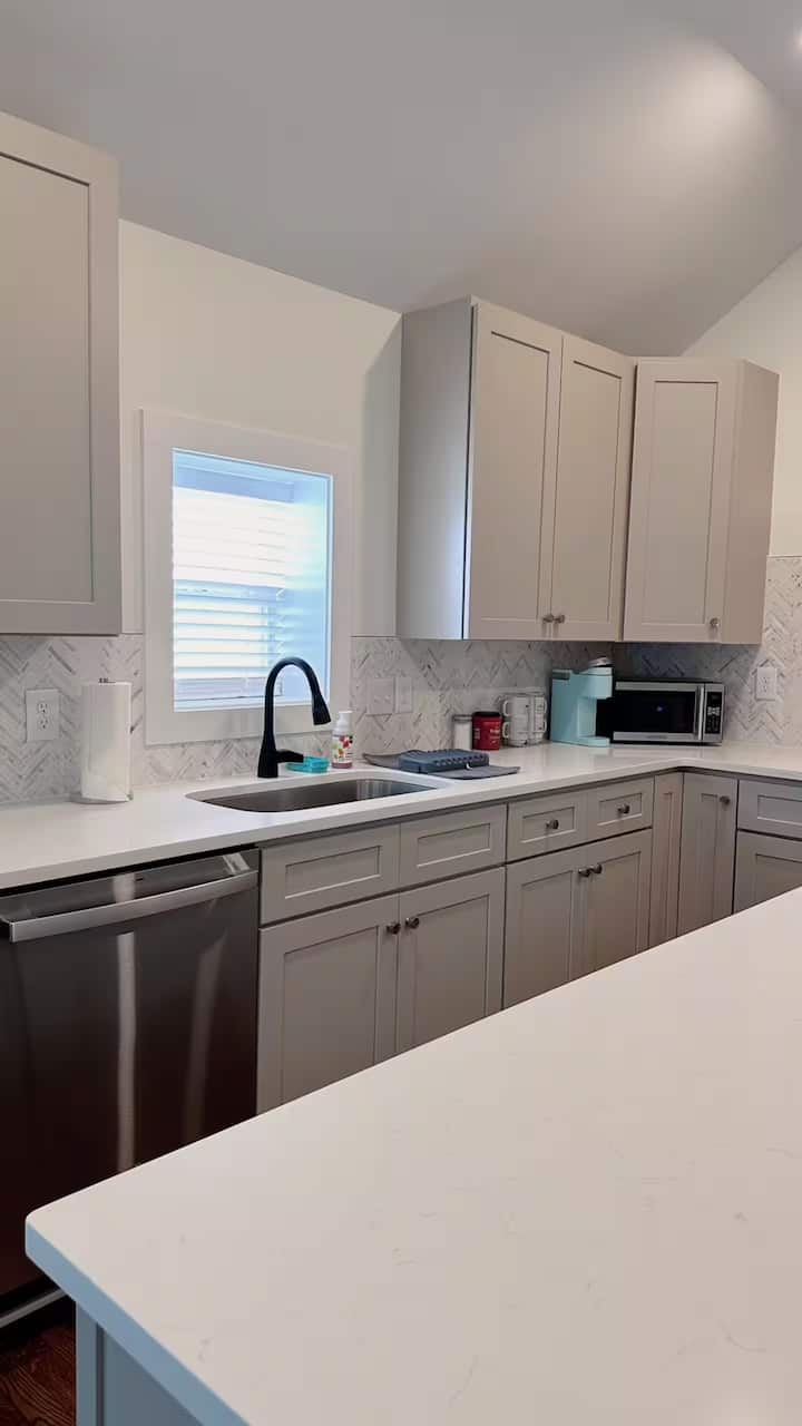 • מטבח מאובזר עם מכשירי חשמל חדשים מפלדת אל-חלד, כלי בישול ומכונת קפה Keurig