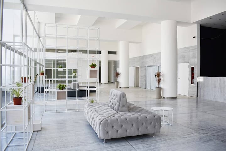 מואר ומרכזי עם מרפסת ובריכה
