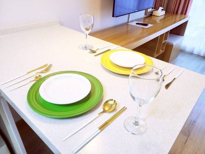 אנחנו אוסרים על בישול חזיר, דגים וצ'ונגוקג'אנג בחדר כדי להתחשב באורחים אחרים בגלל אש וריח, לכן יש להשתמש במקום החיצוני ובאזור הברביקיו.