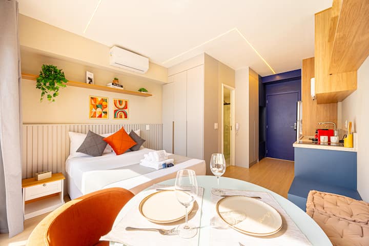ברוכים הבאים לסטודיו הנעים שלנו המעוטר בהרבה חיבה לקבל את פניכם, הממוקם כ -110 מ' מתחנת פאריה לימה, תוכלו ליהנות מהטוב ביותר שיש לאזור להציע! בסטודיו יש מצעים ומצעים (ללא החלפה או החלפה), מטבחון עם סכו"ם יומיומי בסיסי, מיטה זוגית סטנדרטית. בבניין יש קונסיירז' 24 שעות ביממה ואין בו מקום חניה.