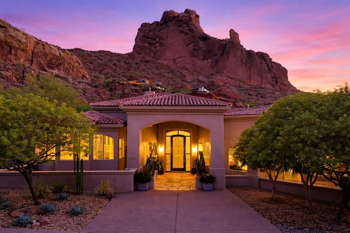 ברוכים הבאים ל-Red Rock, אחוזה אלגנטית השוכנת בפרדייס ואלי האקסקלוסיבית, הידועה בנופים מרהיבים של הרים ובמגורים יוקרתיים. מקום המפלט המפואר הזה כולל חצר אחורית בסגנון אתר נופש עם בריכה נוצצת ומגלשה, ספא מוגבה, מדורה ופאטיו עם גריל ומיני מקרר. בפנים תוכלו ליהנות משלושה אזורי מגורים מתוחכמים, מטבחי גורמה ומשרד פרטי – ממוקם בצורה מושלמת בהר קמלבק ורק כמה דקות מכיכר האופנה של סקוטסדייל לחוויות בלתי נשכחות.