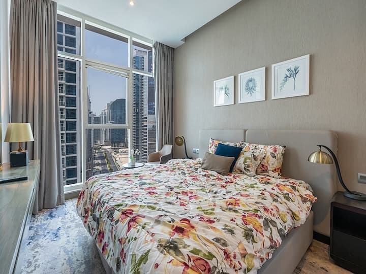סטודיו יוקרתי | ליד קניון דובאי | נוף לאגם