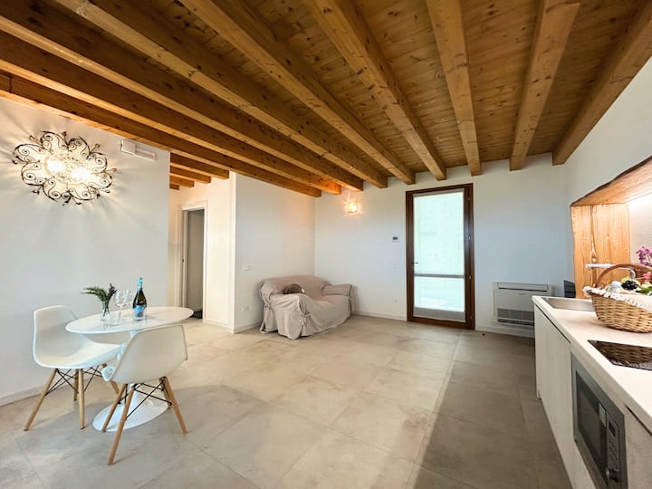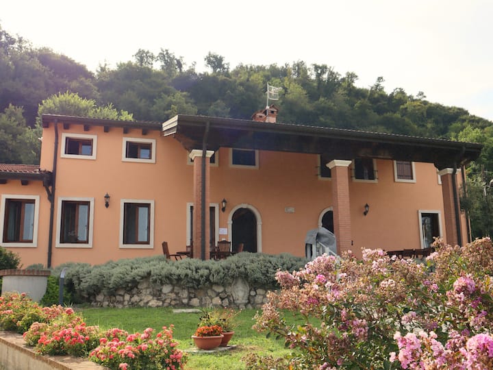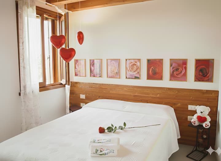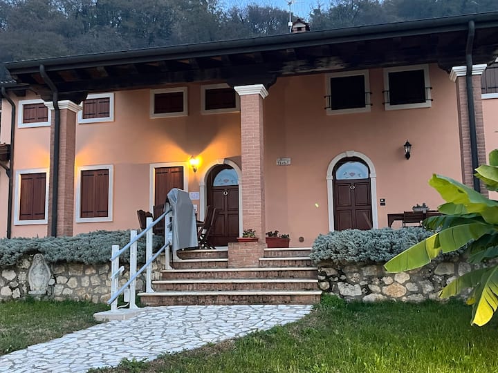 "Petali di Rosa" היא דירת תיירות חקלאית נעימה בגודל 54 מ"ר, השוכנת בין הכרמים של Colli Vicentini. מרוהטת באלגנטיות עם נושא ורדים, היא מציעה נוחות מודרנית כגון מיזוג אוויר, Wi-Fi, טלוויזיה חכמה ומרפסת פרטית עם נוף עוצר נשימה של טירות מונטקיו מאג'ורה. נגיש ומושלם לשהייה רגועה.
