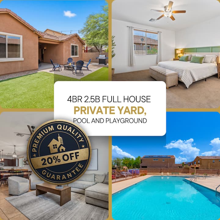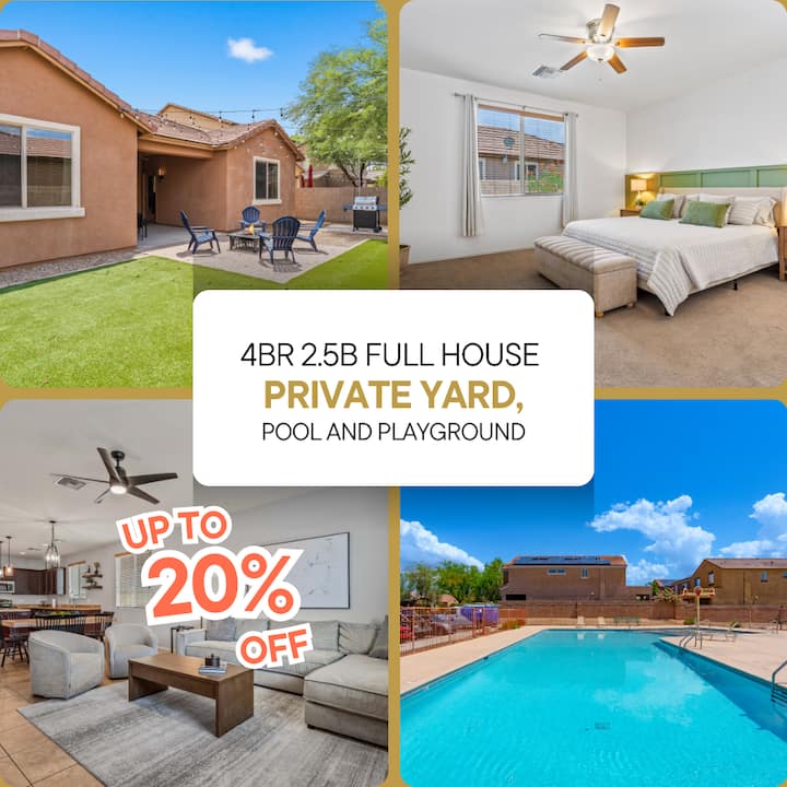בית עם 4 חדרי שינה/2.5 חדרי רחצה עם חצר אחורית פרטית ובריכה משותפת