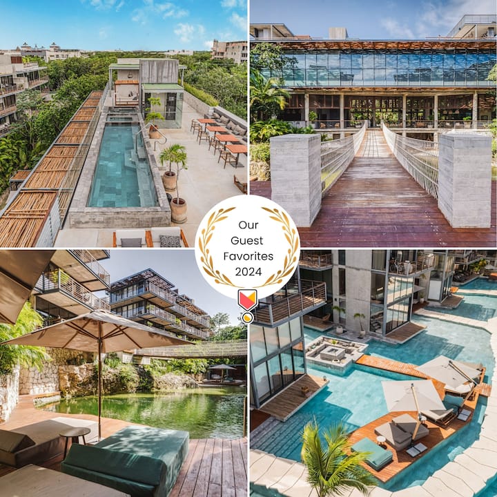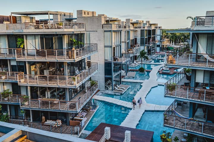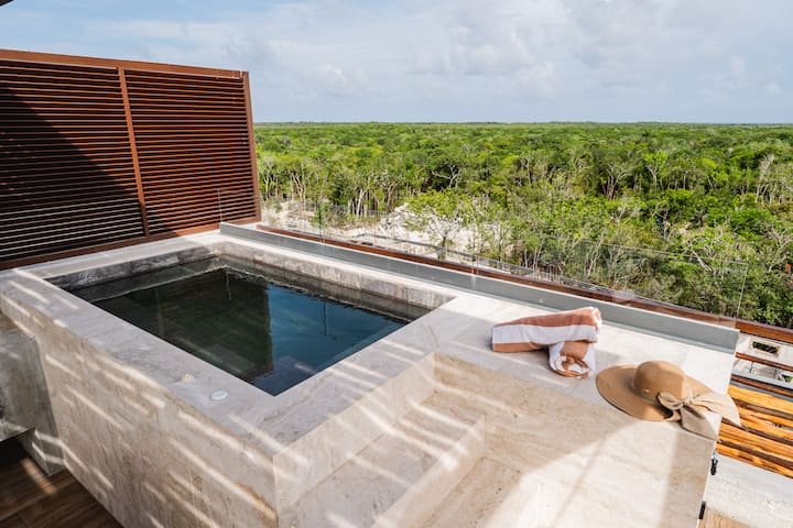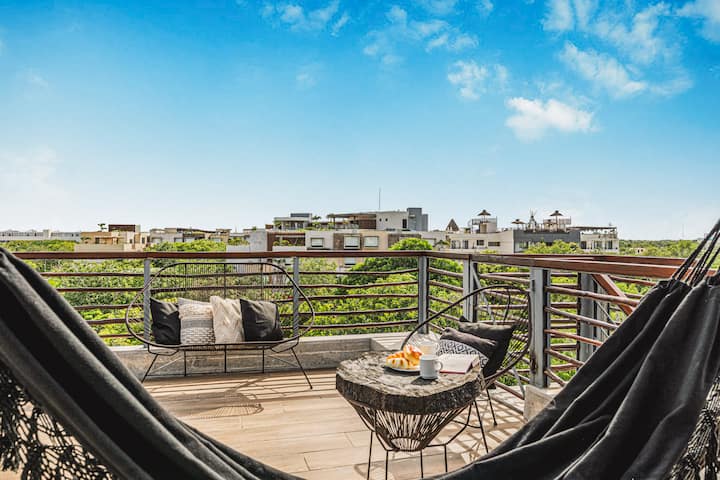 פנטהאוז 2BR: בבית דירות מודרני וחדש לגמרי עם ג'קוזי פרטי, קרוב למרכז טולום, אבטחה מסביב לשעון וכמה בריכות