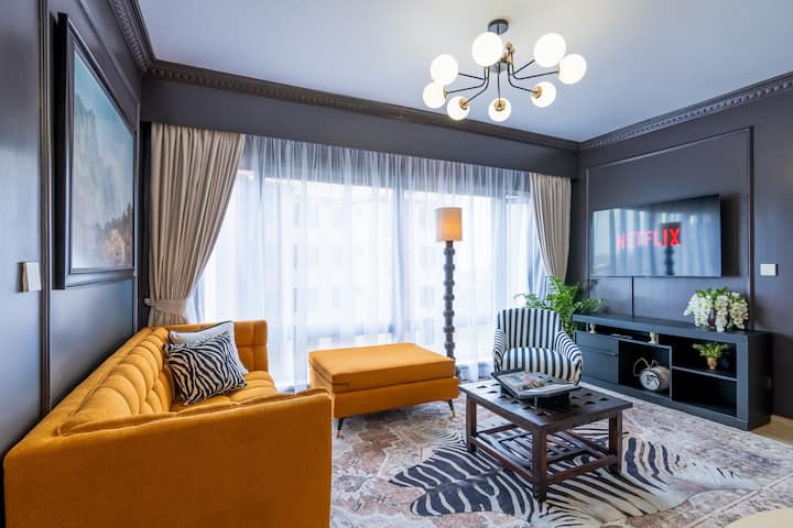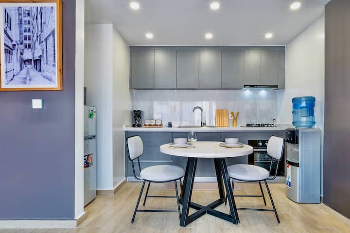 יוקרה 2 חדרי שינה | ליד שדה תעופה וקניון | כוח גיבוי.