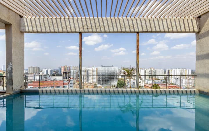 בלב ניירובי עם חניה חינם|WiFi |בריכת גג